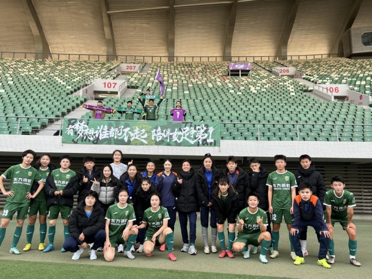 與5名球迷一起從北京來到延安的,還有一面印有“有夢想誰都了不起,與女足一起爭第一”的橫幅。比賽結(jié)束后,北京女足全體隊(duì)員來到5名球迷所在的看臺(tái)下致謝,并合影留念?!埃ㄋ麄儯┱媸遣蝗菀装?,非常感謝他們的支持!”北京女足主帥于允表示,能在客場聽到助威聲,讓全隊(duì)都十分感動(dòng)。