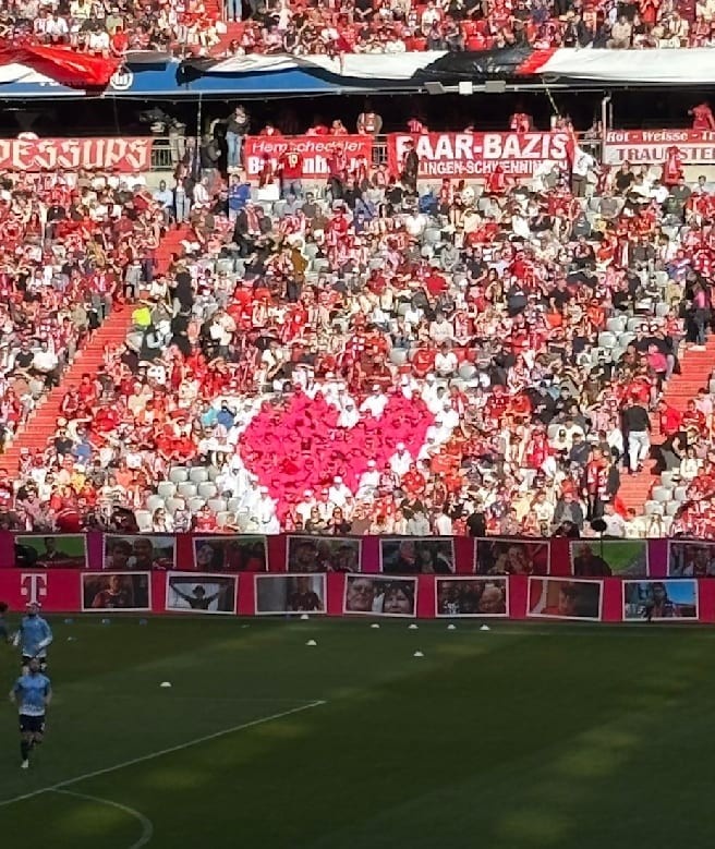 3月9日訊 本輪德甲,拜仁在主場2-3不敵波鴻?!秷D片報》報道,拜仁安聯球場看臺上標志性的德國電信“T”字形圖案在本場比賽被心形圖案取代。