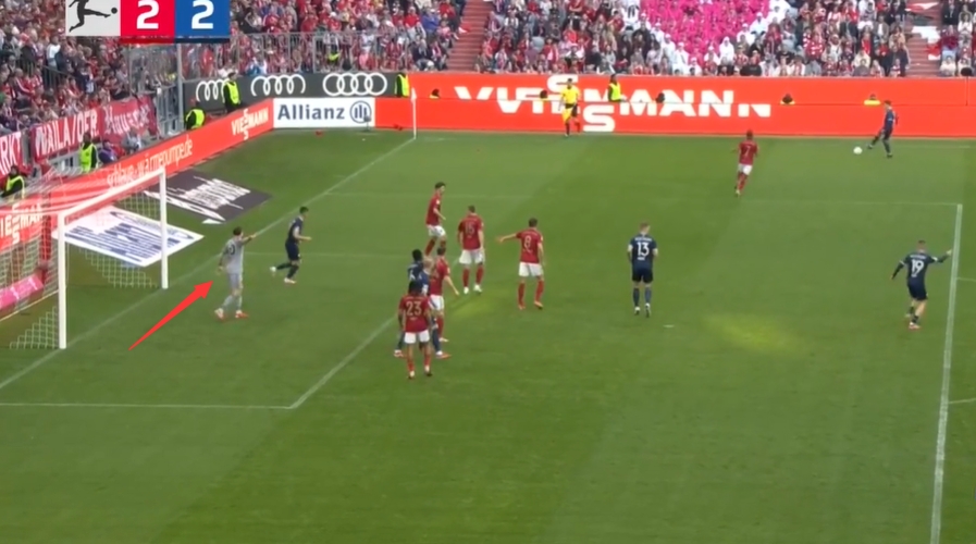 其中拜仁的第二粒丟球,在波鴻起傳中前,烏爾比希就指出了后點(diǎn)的防守隱患,但拜仁無(wú)人協(xié)防,博伊在面對(duì)波鴻傳中時(shí)冒頂,西索科將球頂進(jìn)球門(mén)遠(yuǎn)角。