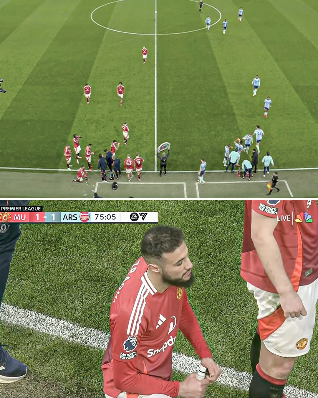 03月10日訊 本輪英超曼聯(lián)主場1-1戰(zhàn)平阿森納,比賽第76分鐘,就在賴斯破門后,主裁將球員叫到場邊,給了一次補水的機會。原來當時英國時間剛過傍晚,主裁判中斷比賽,是為了讓馬茲拉維在內(nèi)的其他穆斯林球員可以開齋,簡單吃喝補充一點能量。英超聯(lián)賽的這一規(guī)定始于2021年。允許球員在齋月期間開齋后,于死球的情況下到場邊進食。 本文標簽: 足球 英超 曼聯(lián) 阿森納