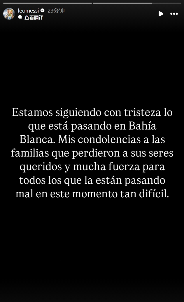 3月10日訊 梅西更新社媒,哀悼阿根廷洪災(zāi)遇難者。注:日前阿根廷bahía blanca地區(qū)遭遇洪災(zāi)、造成重大損失。梅西寫道:“我們懷著悲痛的心情關(guān)注著bahía blanca正在發(fā)生的事情,我向那些失去親人的家庭致以哀悼,也希望所有在這個艱難時刻正經(jīng)歷困境的人能擁有力量。” 本文標簽: 足球 邁阿密國際 梅西