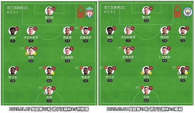 憑借赫德森-奧多伊的精彩進球,諾丁漢森林主場擊敗曼城,從直接競爭對手那里奪得了價值連城的“六分”,在Big6球隊身上拿分已經(jīng)成為這支球隊的常規(guī)操作。聯(lián)賽上半程,諾丁漢森林主場送給利物浦賽季唯一敗仗,客場戰(zhàn)平切爾西,從狀態(tài)不佳的曼聯(lián)和熱刺那里賺足6分,踢到第17輪時所取得積分便已經(jīng)超過了上賽季的分數(shù)(32分)。