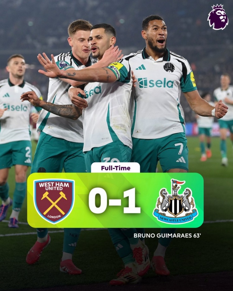 3月11日訊 今天凌晨英超第28輪最后一場比賽,西漢姆聯(lián)主場對陣紐卡。最終憑借著吉馬良斯的下半場制勝進(jìn)球,紐卡斯?fàn)柨蛨?-0擊敗西漢姆聯(lián)。