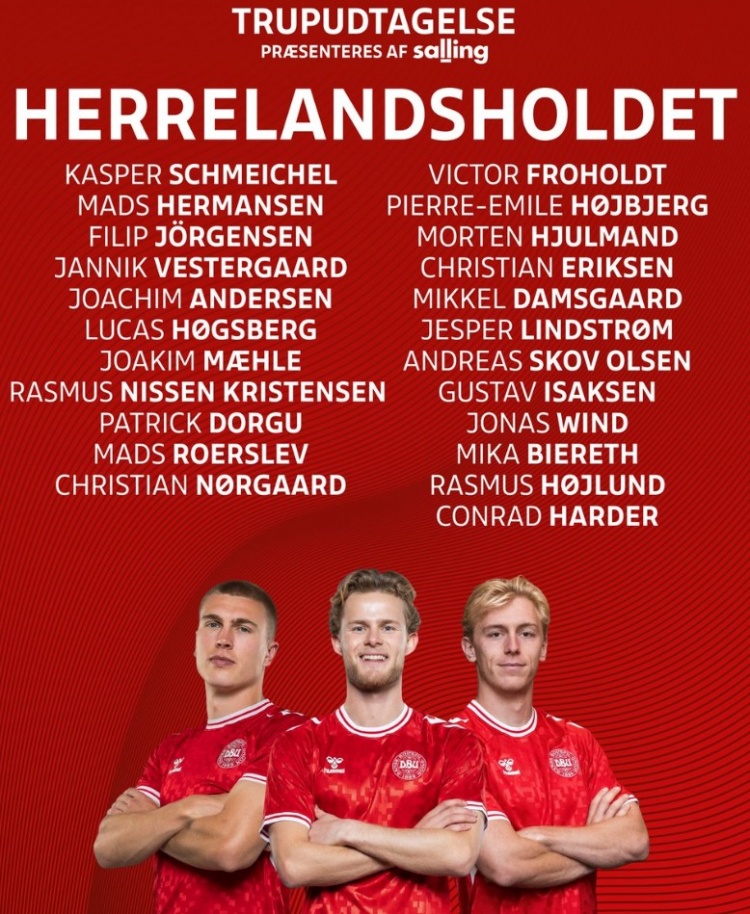 3月11日訊 今天,丹麥足協(xié)在官方社媒公布了新一期國家隊球員名單,霍伊倫領(lǐng)銜,小舒梅切爾、埃里克森在列