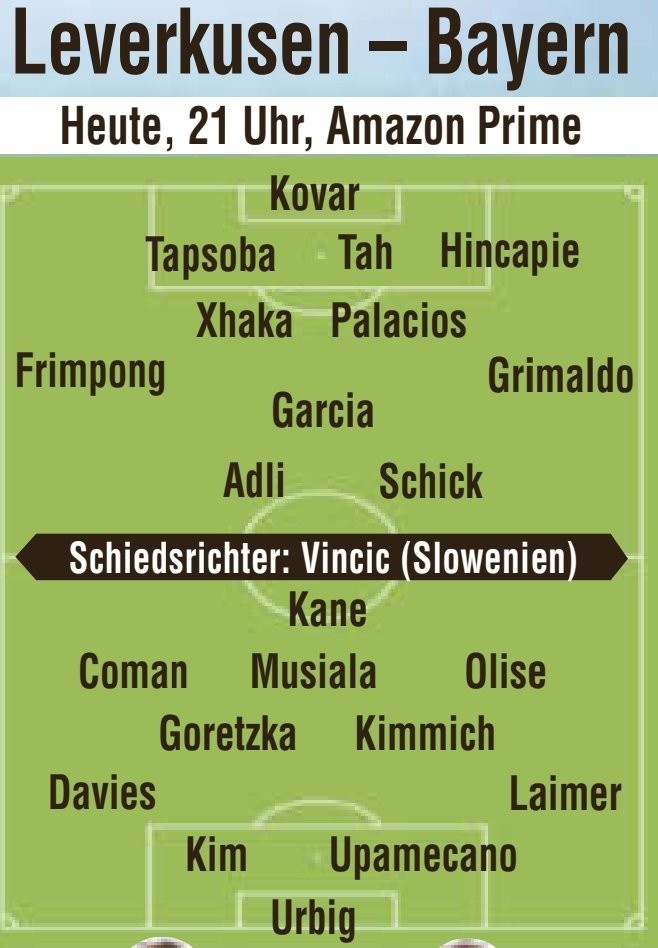 烏爾比希/戴維斯、金玟哉、于帕梅卡諾、萊默爾/格雷茨卡、基米希/科曼、穆西亞拉、奧利塞/凱恩