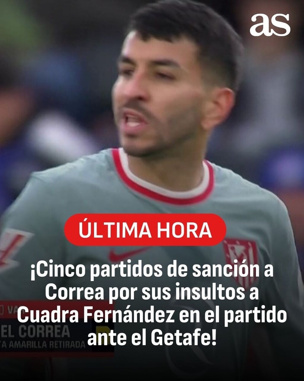本紀(jì)律委員會(huì)決定駁回馬德里競(jìng)技俱樂部的申訴,并對(duì)球員安赫爾-科雷亞作出以下處罰: