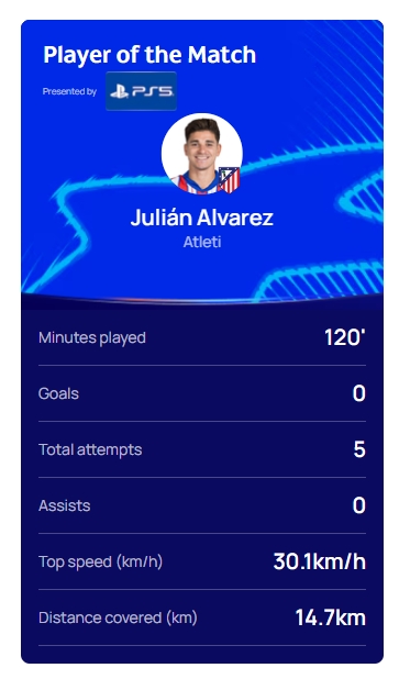 03月13日訊 歐冠1/8決賽次回合,皇家馬德里點(diǎn)球大戰(zhàn)戰(zhàn)勝馬競晉級8強(qiáng),賽后,馬競前鋒阿爾瓦雷斯當(dāng)選了全場最佳。本場比賽阿爾瓦雷斯5次打門,跑動距離14.7km。在點(diǎn)球大戰(zhàn)中,阿爾瓦雷斯主罰打進(jìn),但因?yàn)槎斡|球被判違例,點(diǎn)球無效。 本文標(biāo)簽: 足球 西甲 皇家馬德里 馬德里競技 歐冠