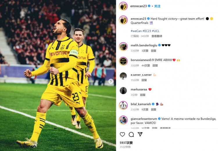 埃姆雷-詹也在賽后通過(guò)社媒曬出了自己的怒吼慶祝照,并配文:“全隊(duì)努力鏖戰(zhàn)贏下勝利??????歐冠八強(qiáng)戰(zhàn)????”