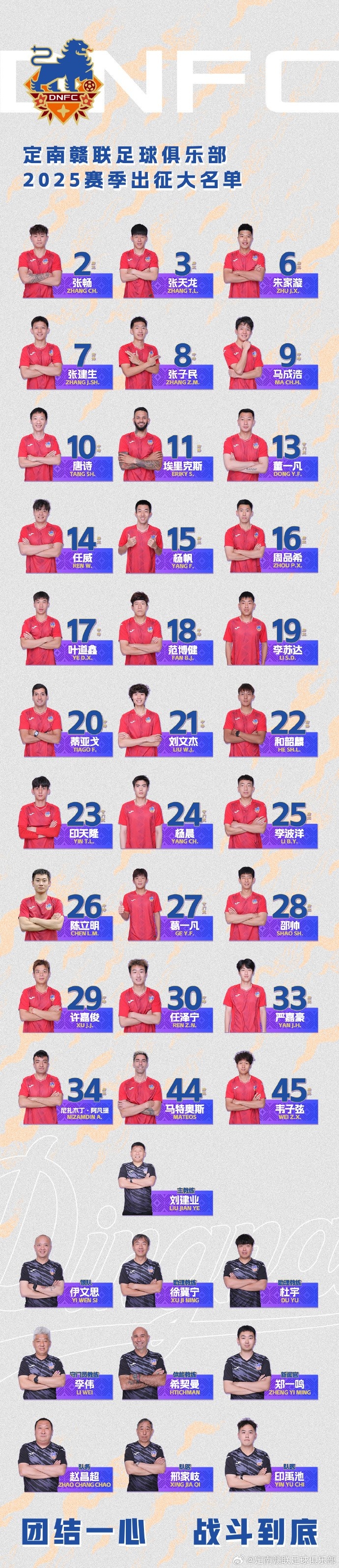 3月13日訊 定南贛聯(lián)俱樂部公布了新賽季一線隊(duì)名單,球隊(duì)由劉建業(yè)掛帥,共30名球員入選,其中唐詩身披10號。