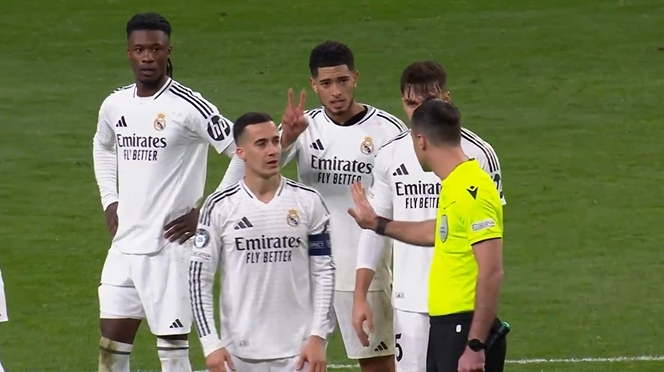 皇馬全員抗議!檢查小蜘蛛是否2次觸球時(shí),貝林等人紛紛伸2根手指