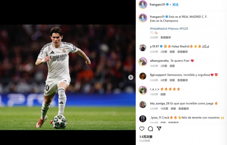 3月13日訊 皇馬在本輪歐冠點(diǎn)球淘汰馬競,弗蘭-加西亞替補(bǔ)費(fèi)蘭-門迪登場。兩人也都在賽后通過社媒曬照慶祝晉級(jí)。費(fèi)蘭-門迪曬出自己的比賽照,并配文:“皇家馬德里????”弗蘭-加西亞同樣曬出比賽照,并配文:“這就是皇家馬德里!這就是冠軍!” 本文標(biāo)簽: 足球 西甲 皇家馬德里 馬德里競技 歐冠