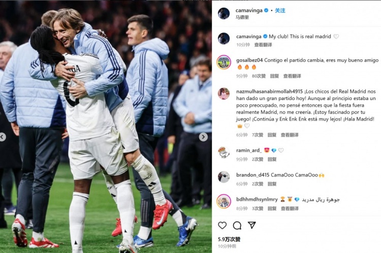3月13日訊 皇馬在本輪歐冠點(diǎn)球淘汰馬競,卡馬文加替補(bǔ)出場表現(xiàn)搶眼。他也在賽后通過社媒,曬出自己和老將莫德里奇在點(diǎn)球大戰(zhàn)之后相擁慶祝的合照,并配文:“我的俱樂部!這就是皇馬!” 本文標(biāo)簽: 足球 西甲 皇家馬德里 馬德里競技 歐冠