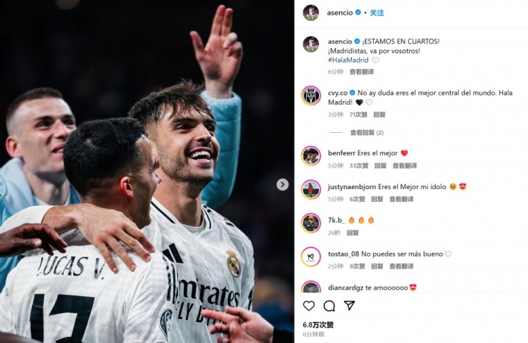 他也在賽后通過社媒曬出晉級(jí)后的慶祝照,并喊話球迷:“我們晉級(jí)歐冠八強(qiáng)了!馬德里主義者們,這是獻(xiàn)給你們的!”