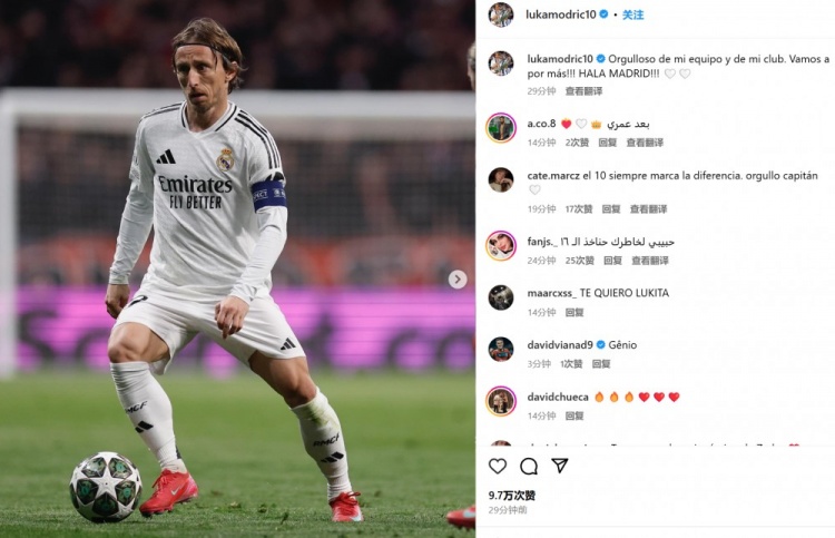 3月14日訊 皇馬在本輪歐冠點球淘汰馬競,老將莫德里奇首發(fā)出戰(zhàn)并在賽后通過社媒紀(jì)念。莫德里奇曬出自己的比賽照并配文:“我為我的球隊和俱樂部感到驕傲。讓我們繼續(xù)贏得更多?。?!馬德里前進?。。 ?/p>39歲的莫德里奇本賽季為皇馬出戰(zhàn)44場比賽,貢獻4球7助攻,當(dāng)前合同今夏到期。 本文標(biāo)簽: 足球 西甲 皇家馬德里 馬德里競技 歐冠