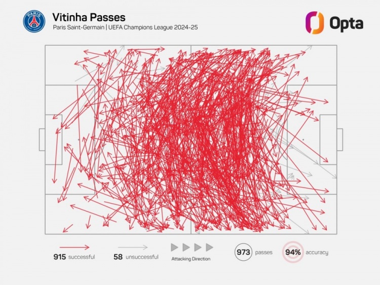 數(shù)據(jù)統(tǒng)計(jì)顯示,他本賽季歐冠已經(jīng)成功傳球915次。自03-04賽季以來(lái),只有4名中場(chǎng)的單賽季歐冠成功傳球比他更多: