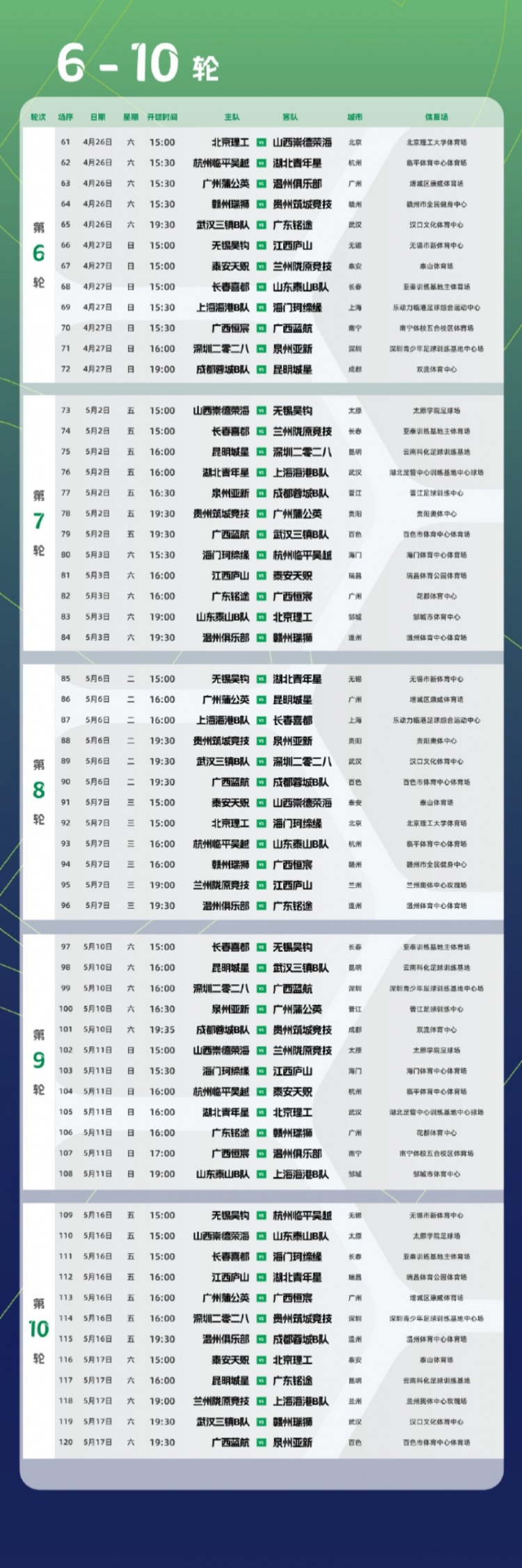 3月14日訊 中乙官方公布新賽季預(yù)賽階段賽程,共進(jìn)行22輪264場(chǎng)比賽。