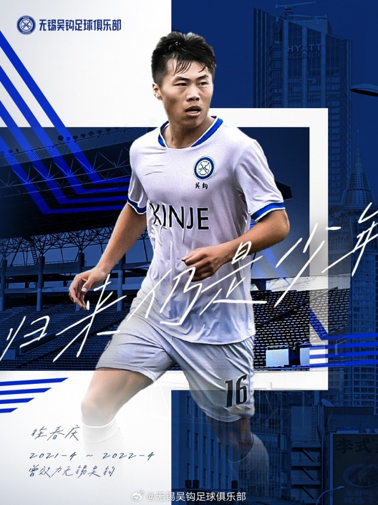 我們在此鄭重宣布,經(jīng)雙方協(xié)商一致,球員徐春慶加盟無錫吳鉤足球俱樂部。2025賽季,他將為無錫而戰(zhàn)!