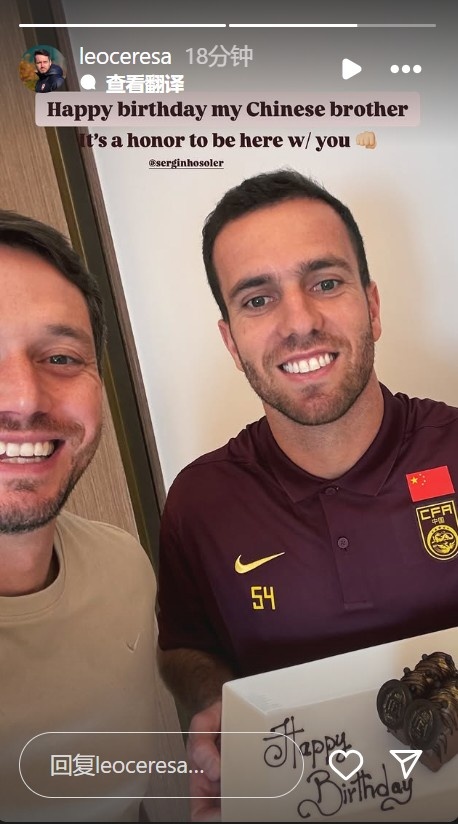 3月15日訊 塞爾吉尼奧的理療師萊奧-切雷薩更新社媒,為塞爾吉尼奧慶生。今天是國腳塞爾吉尼奧的30歲生日,他已經(jīng)抵達迪拜與國足會合并參與合練,萊奧-切雷薩曬出與塞爾吉尼奧的合影,并配文:生日快樂,我的中國兄弟,很榮幸和你一起出現(xiàn)在這里。國足今晚將與科威特隊進行一場熱身賽,據(jù)報道,塞爾吉尼奧已經(jīng)進入到本場比賽報名陣容中,他極有可能在本場比賽中替補出場迎來國足首秀。 本文標簽: 足球 中超 中國足球 中國男足