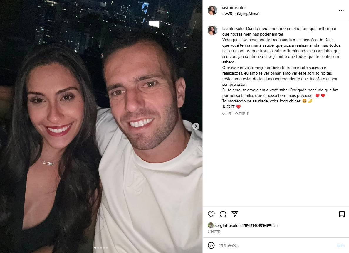 嫂子好!塞爾吉尼奧妻子中葡雙語(yǔ)告白:超想你中國(guó)人,我愛(ài)你??