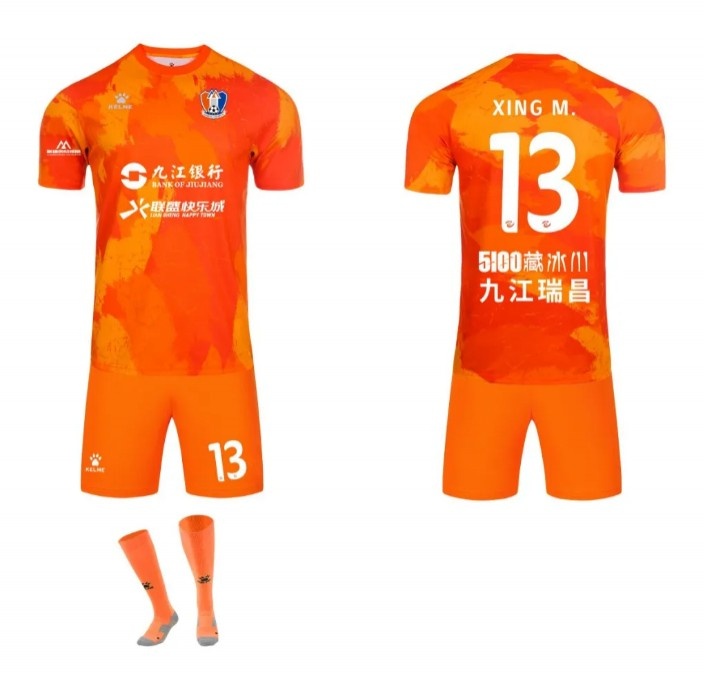 主場戰(zhàn)袍延續(xù)了江西廬山隊經典的橙色主色調,象征著激情、活力與勝利。球衣正面采用漸變設計,猶如長江之水奔流不息,寓意著江西足球生生不息,勇往直前。球衣背面印有“九江瑞昌”字樣,彰顯著球隊為江西、為九江、為瑞昌榮譽而戰(zhàn)的決心。