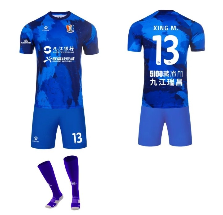 第一客場戰(zhàn)袍采用沉穩(wěn)大氣的深藍色,彰顯球隊沉穩(wěn)冷靜、從容不迫的氣質。以浩瀚星空為靈感,將深邃的藍色作為主色調,象征著江西廬山足球俱樂部胸懷遠大理想,在綠茵場上追逐夢想,永不言棄的精神。
