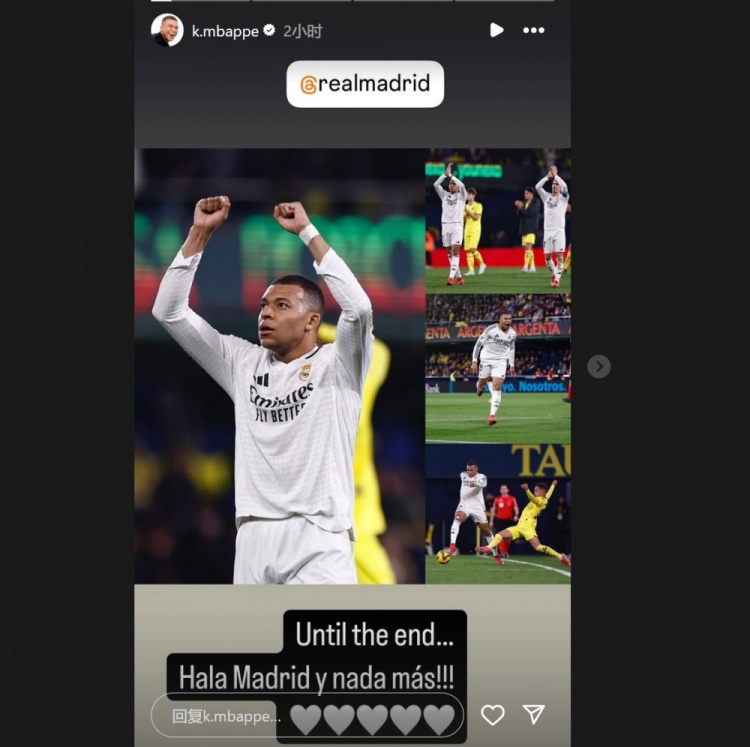姆巴佩也在賽后通過社媒曬出自己的比賽照,并配文:“戰(zhàn)斗到最后一刻…馬德里前進(jìn),無需多言?。?!”