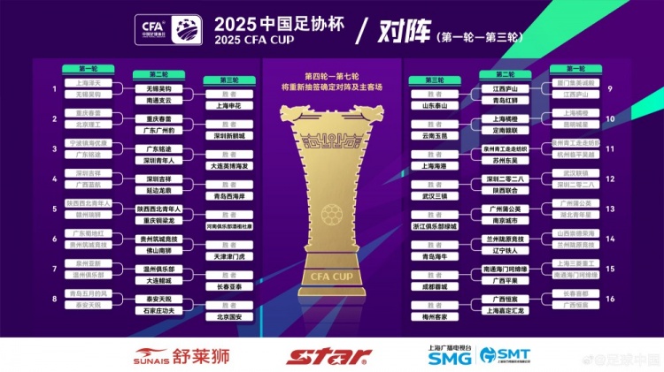 3月16日訊 2025賽季中國足協(xié)杯第1輪結(jié)束爭奪,16支晉級(jí)球隊(duì)產(chǎn)生,他們?cè)诘诙唽⒚鎸?duì)中甲球隊(duì)。