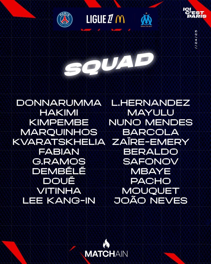 前鋒:克瓦拉茨赫利亞、貢薩洛-拉莫斯、登貝萊、杜埃、巴爾科拉、姆巴耶