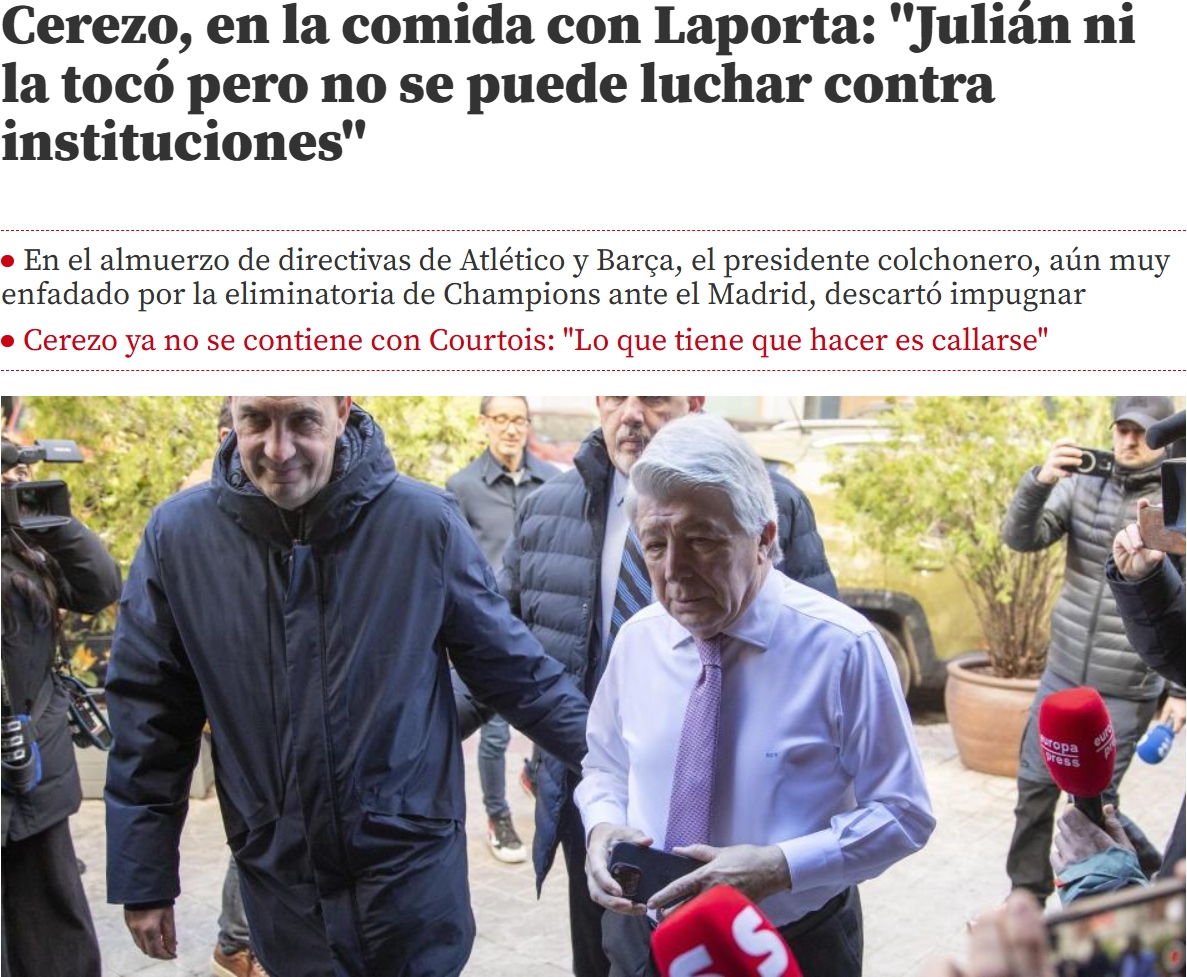馬競主席塞雷佐再次談到了周中歐冠阿爾瓦雷斯被判無效的點(diǎn)球,塞雷佐斬釘截鐵地表示這球應(yīng)算有效。