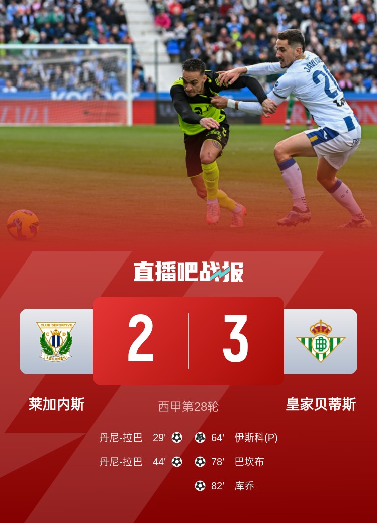 伊斯科點(diǎn)射,安東尼策動絕殺,皇家貝蒂斯3-2逆轉(zhuǎn)萊加內(nèi)斯,西甲5連勝。