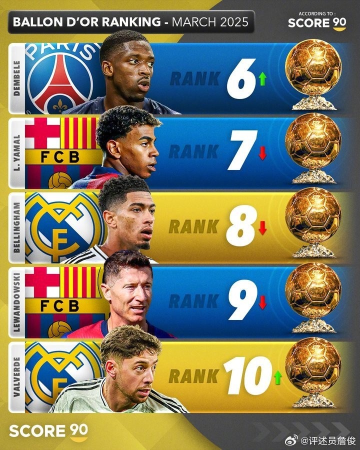 3月18日訊 著名解說員詹俊曬出外媒列舉的金球獎熱門排名,談到金球獎。詹俊說:國外網(wǎng)站評分系統(tǒng)中2025年金球獎熱門人選前十五名。本季已經(jīng)打進30球迎來個人職業(yè)生涯巔峰的登貝萊,會不會是“黑馬”?如果大巴黎本季歐冠最終捧杯的話…… 本文標簽: 足球 西甲 英超 意甲 德甲 法甲 巴黎圣日耳曼 巴塞羅那 利物浦 皇家馬德里 拜仁慕尼黑 馬德里競技 凱恩 姆巴佩 范迪克 薩拉赫