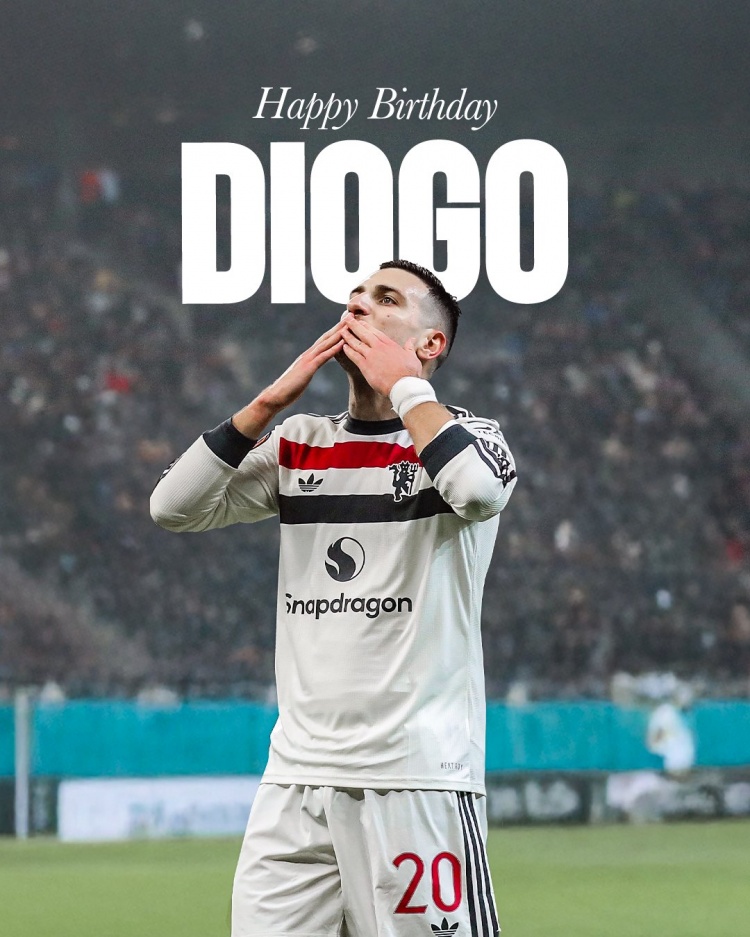 曼聯(lián)官方社媒曬出為達(dá)洛特制作的海報,配文:“祝達(dá)洛特生日快樂!”