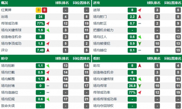 其次,綜合性的數(shù)據(jù)方面也可以很好的證明他的提高,2024賽季,塞爾吉尼奧在長春亞泰完成了24次出戰(zhàn),效率比較高。其中他完成了8球8助攻的成績,創(chuàng)造出了8次絕佳的進球機會,總共射門次數(shù)為55次,在進攻端堪稱是這支隊伍的“大腿”。此外,他場均能夠給出1.5次的關(guān)鍵傳球,亞泰大部分的機會都是他制造的。