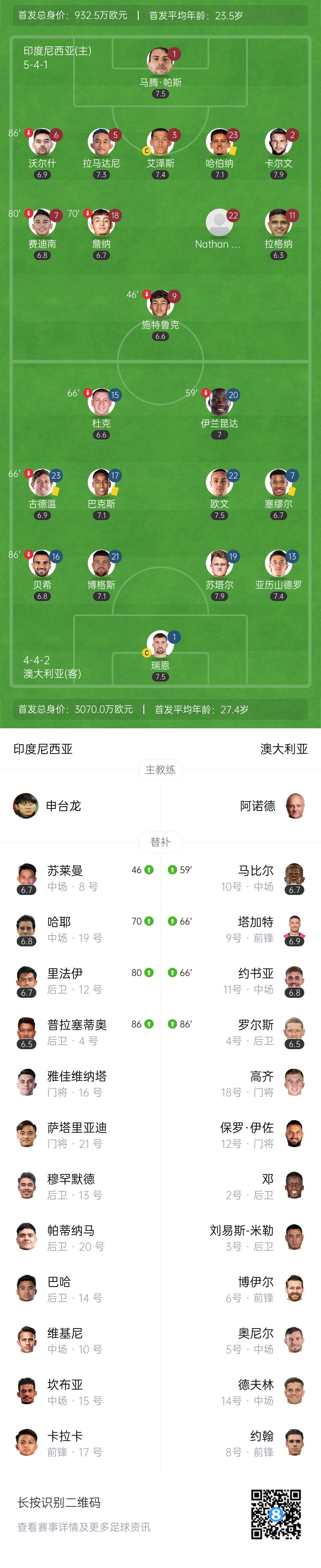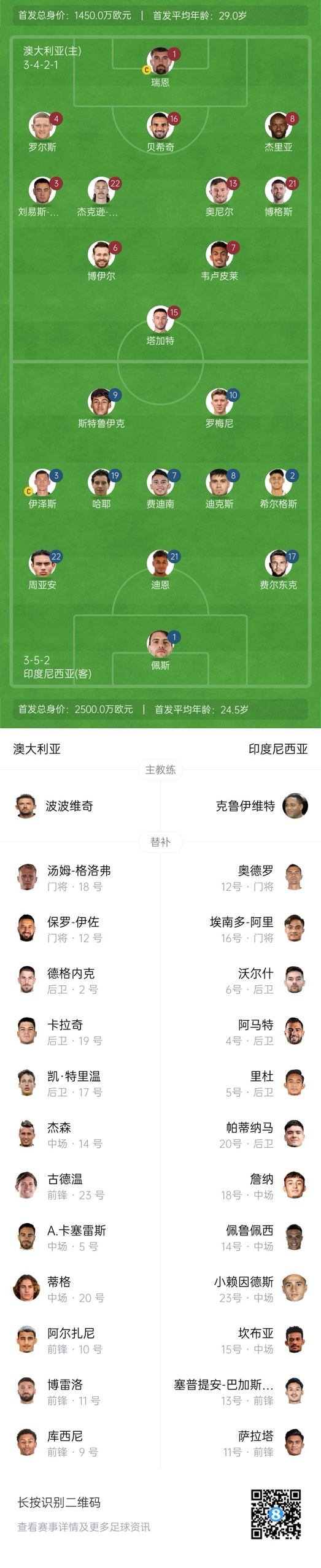 03月20日訊 國足同組對手澳大利亞vs印尼首發(fā)出爐,而雙方的身價對比已經發(fā)生了驚人的逆轉。澳大利亞總身價1450萬歐,而印尼隊的身價則高達2500萬歐。在印尼首發(fā)中有10名來自荷蘭的歸化球員,其中身價最高的是900萬歐的希爾格斯。雙方上次交鋒,印尼還是900萬歐對3000萬歐的劣勢。 本文標簽: 足球 中超 中國足球 國家隊 中國男足