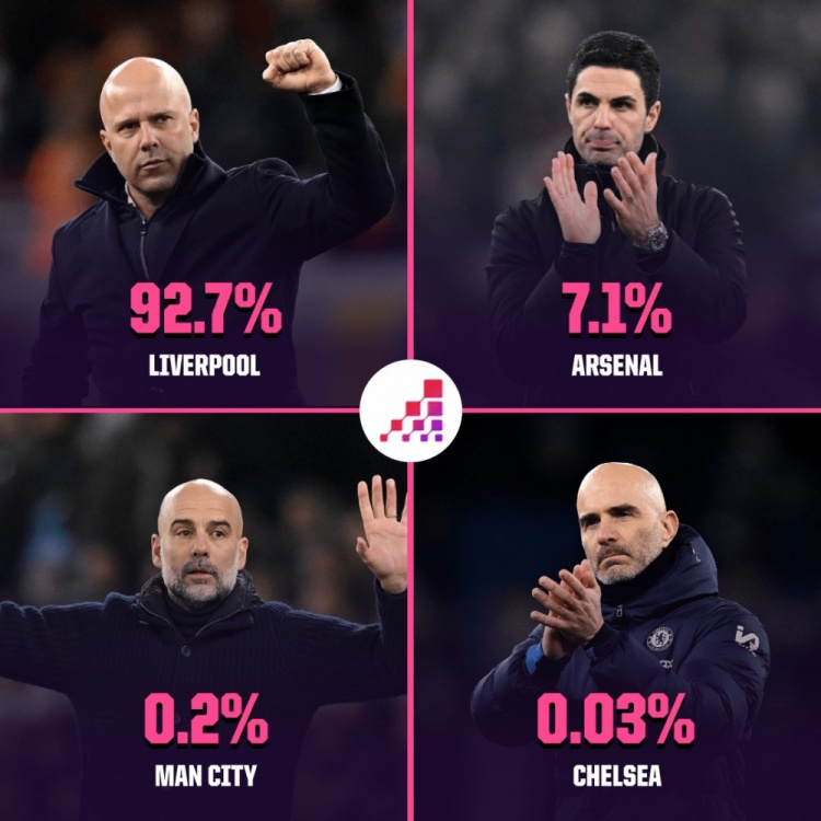 1月26日訊 在英超第23輪部分比賽完賽后,Opta更新了本賽季英超的奪冠概率,利物浦升至了92.7%。Opta本賽季英超奪冠概率:利物浦92.7%阿森納7.1%曼城0.2%切爾西0.03% 本文標(biāo)簽: 足球 英超 切爾西 阿森納 曼城 利物浦