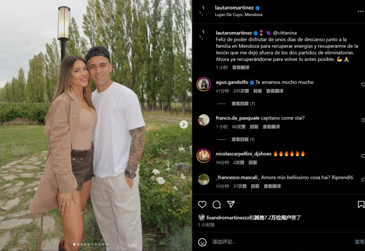 3月23日訊 由于肌肉拉傷,勞塔羅缺席了阿根廷國家隊本月的世預賽。今天,勞塔羅更新社媒,表示自己正在休假,希望盡快恢復狀態(tài)。勞塔羅曬出和家人度假的照片,并寫道:我很開心能夠和家人在門多薩休息幾天,從而補充能量。我因傷缺席了兩場世界杯預選賽,希望能從傷病中恢復過來。 現(xiàn)在我正在康復當中,以便盡快復出。國米國際比賽日結束后的首場比賽將在3月31日凌晨進行,屆時球隊將在意甲中對陣烏迪內斯。 本文標簽: 足球 意甲 國際米蘭 阿根廷