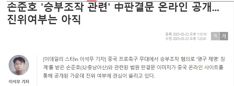 edaily標(biāo)題:孫準(zhǔn)浩假球案判決書在網(wǎng)上發(fā)布,真實性尚不清楚。