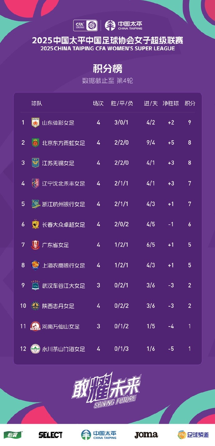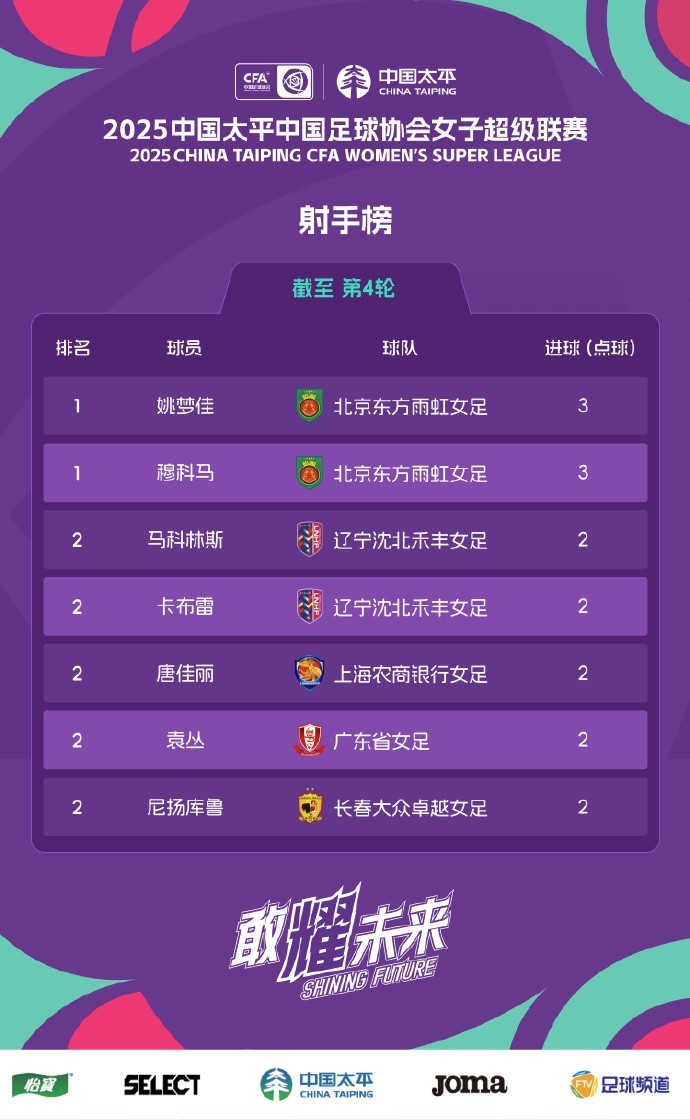 2025中國(guó)太平女超聯(lián)賽第4輪射手榜 ?? ???