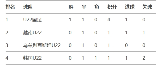 U22邀請(qǐng)賽積分榜:U22國(guó)足1勝1平0失球暫居第一,末輪對(duì)陣越南