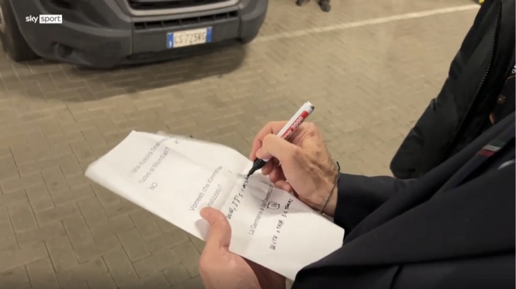 在首回合于米蘭進(jìn)行的比賽期間,布馮時(shí)間很少,他非常禮貌地為無(wú)法接受采訪道歉,因此在次回合于多特蒙德進(jìn)行的比賽結(jié)束后,記者Fabian Schreiner用一張印有以意大利語(yǔ)提出的三個(gè)問題的A4紙來(lái)請(qǐng)布馮回答。這三個(gè)問題都是一般疑問句,分別是: