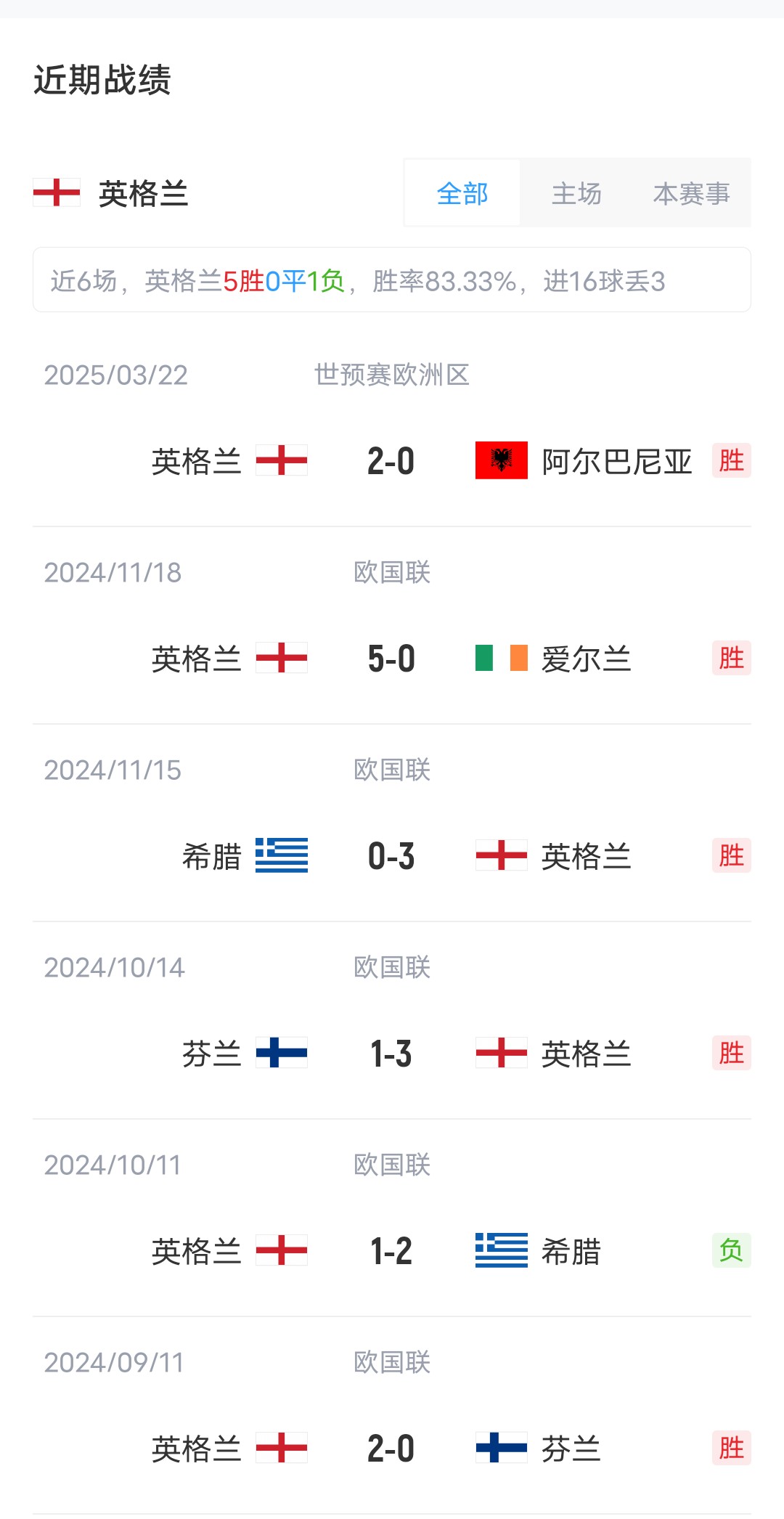 上輪比賽英格蘭客場2-0擊敗阿爾巴尼亞,拉脫維亞客場1-0小勝安道爾。目前兩隊(duì)實(shí)力差距明顯,在最新的FIFA排名中,英格蘭排在第4,而拉脫維亞排在140。