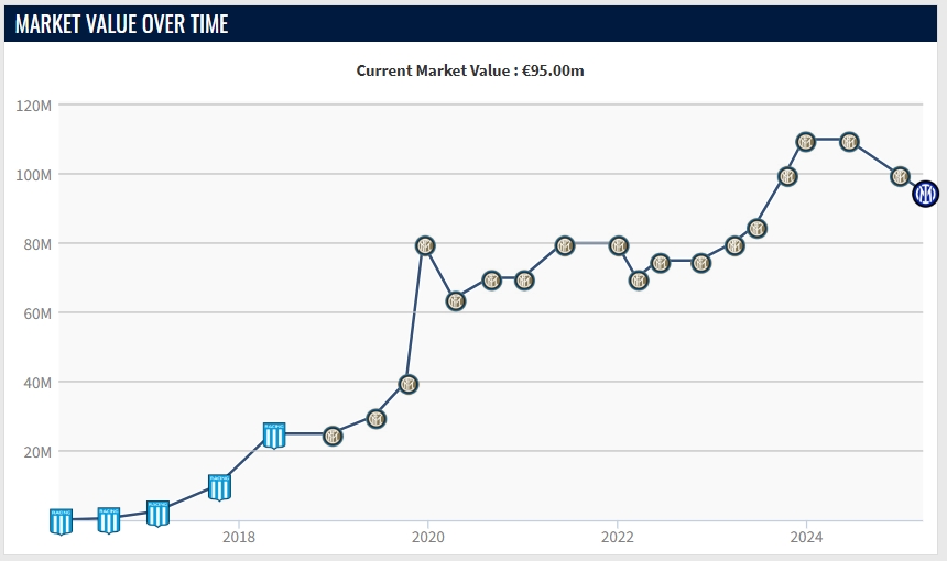 03月25日訊 德國轉(zhuǎn)會(huì)市場將在今天更新意甲聯(lián)賽球員身價(jià),國米前鋒勞塔羅身價(jià)下調(diào)500萬歐,現(xiàn)身價(jià)9500萬歐。本賽季,勞塔羅為國米出場39次,打進(jìn)18球、助攻6次。勞塔羅歷史最高身價(jià)曾到達(dá)1.1億歐元。 本文標(biāo)簽: 足球 意甲 國際米蘭