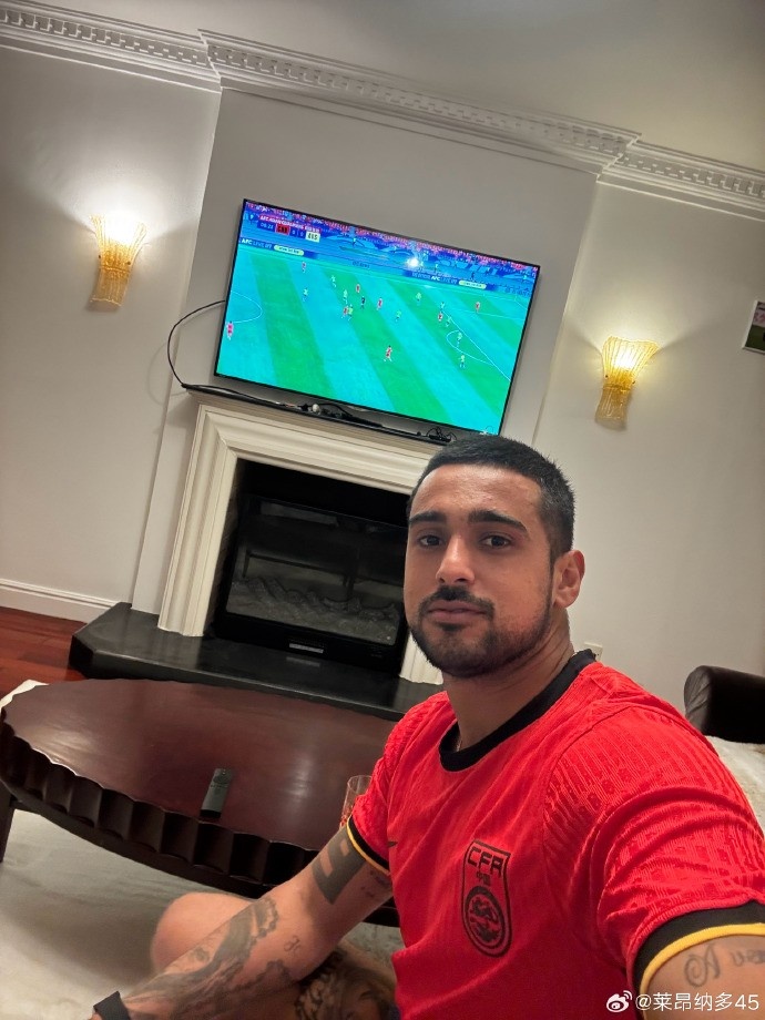 萊昂納多身穿國(guó)足球衣,在社媒打拼音為國(guó)足助威:Jiāyóu