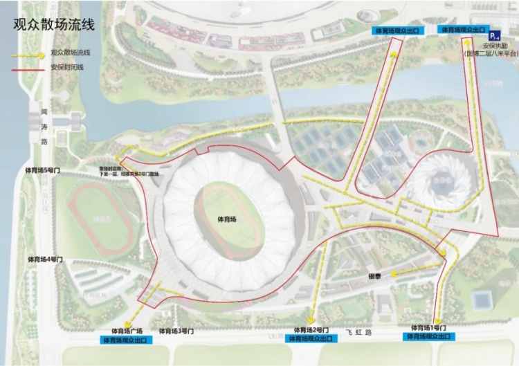 2.公交出行:因賽事當(dāng)天下午4時左右,飛虹路、科技館街將實施交通管制,周邊將無地面公交可直接到達奧體中心,建議觀眾乘坐地鐵抵達體育場。