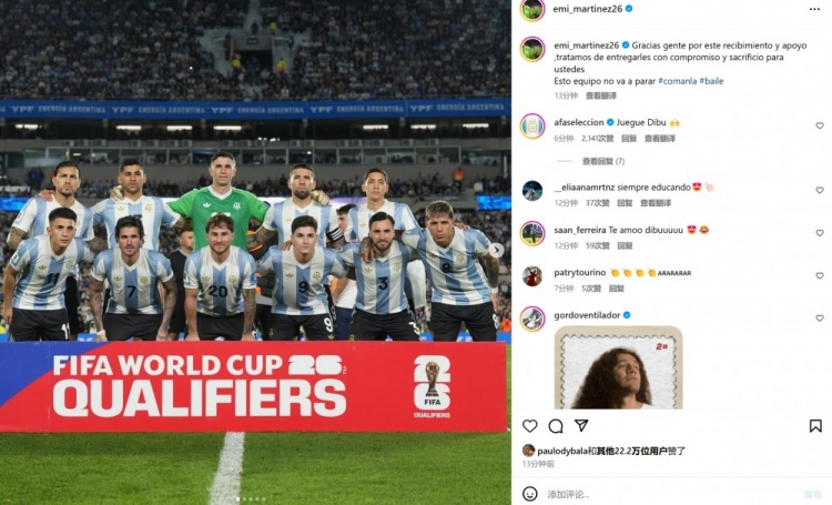 3月26日訊 在本輪南美區(qū)世預賽,阿根廷4-1大勝巴西。阿根廷門將馬丁內斯也在社媒曬出本場球隊首發(fā)合影,配文寫道:“感謝大家的熱情支持,我們在場上努力付出一切,這支球隊永不會停下腳步!” 本文標簽: 足球 國家隊 阿根廷 英超 阿斯頓維拉