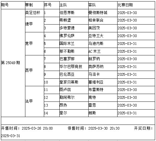 傳足勝負(fù)彩第25049期競猜賽事為英足總杯、德甲、意甲、西甲和法甲賽事,其中曼城將在英足總杯1/4決賽中對陣伯恩茅斯,意甲領(lǐng)頭羊國米主場面對烏迪內(nèi)斯,AC米蘭和那不勒斯展開強強對話,西甲巴薩坐鎮(zhèn)主場迎戰(zhàn)赫羅納。