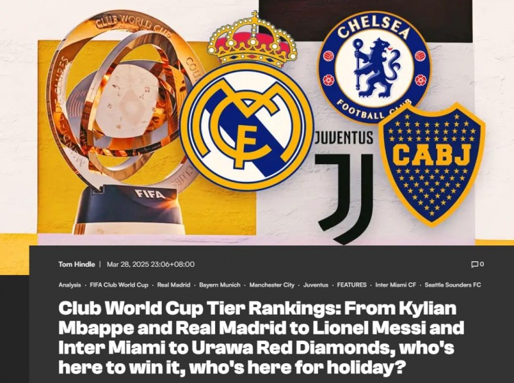 3月29日訊 新世俱杯將于今年夏天在美國(guó)舉行,“進(jìn)球網(wǎng)”為已經(jīng)確定的31隊(duì)進(jìn)行了“分班”。