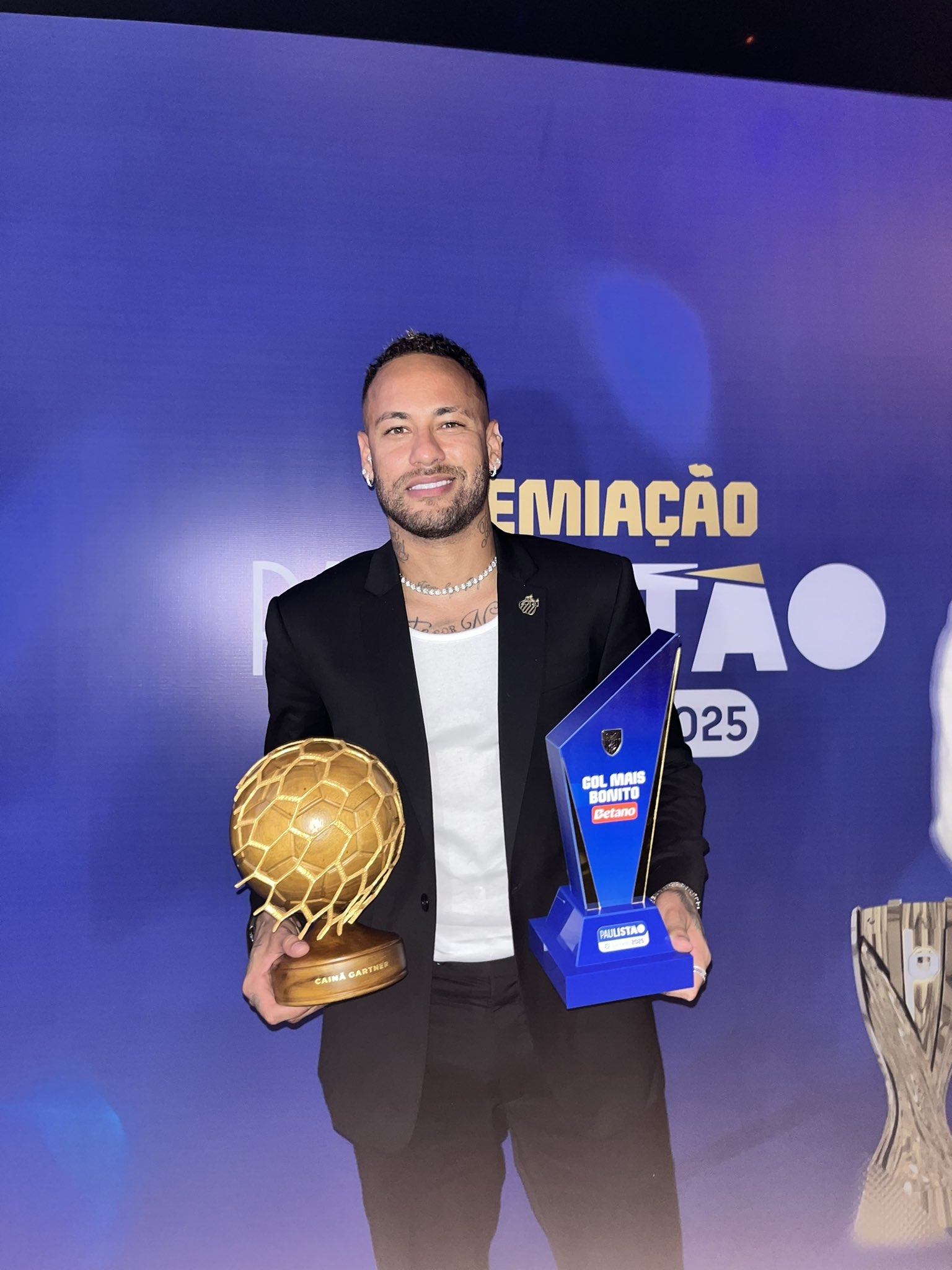 3月29日訊 內(nèi)馬爾日前出席圣保羅州聯(lián)賽頒獎(jiǎng)典禮,他對(duì)國(guó)際里梅拉的角球直接破門(mén)獲得了最佳進(jìn)球。