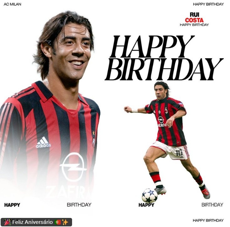 3月29日訊 今天是前葡萄牙國(guó)腳魯伊-科斯塔53歲生日,AC米蘭官推也曬出海報(bào)為這位昔日中場(chǎng)大師送上生日祝福。