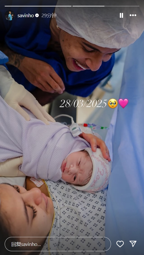 3月30日訊 曼城邊鋒薩維尼奧更新社媒動態(tài),慶祝孩子出生。薩維尼奧去年12月宣布女友懷孕,今日他在社交媒體上曬出新生兒的照片,并配上孩子出生的日期——2025年3月28日。薩維尼奧本賽季為曼城出戰(zhàn)38場比賽,打進(jìn)2球,助攻11次。 本文標(biāo)簽: 足球 英超 曼城